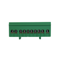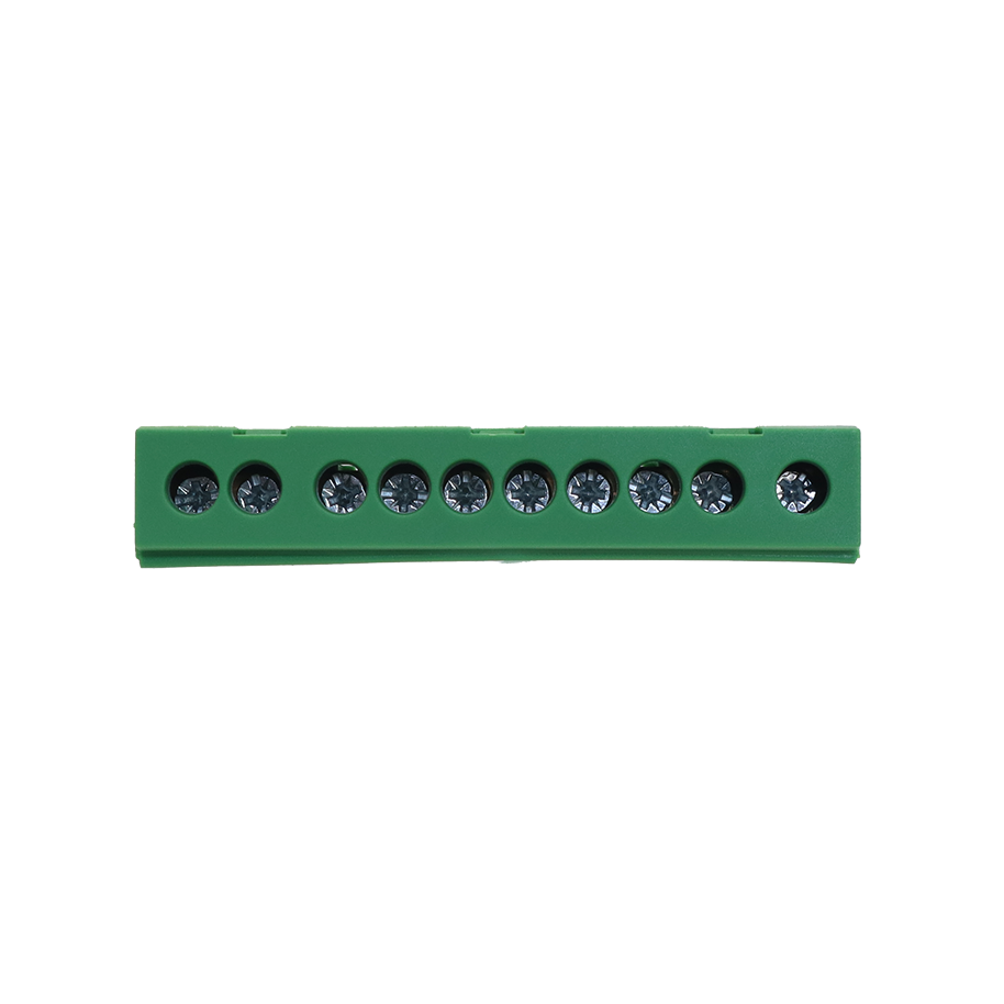 Bornera de distribución verde, 1p, 10 entradas.