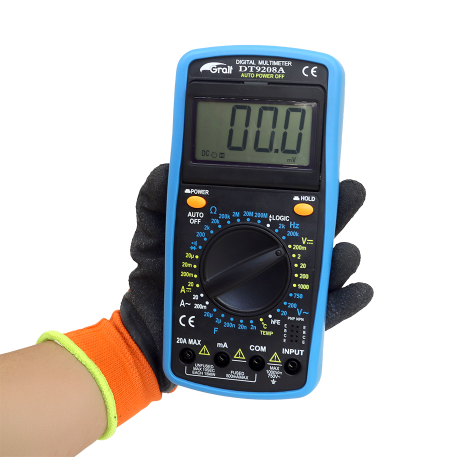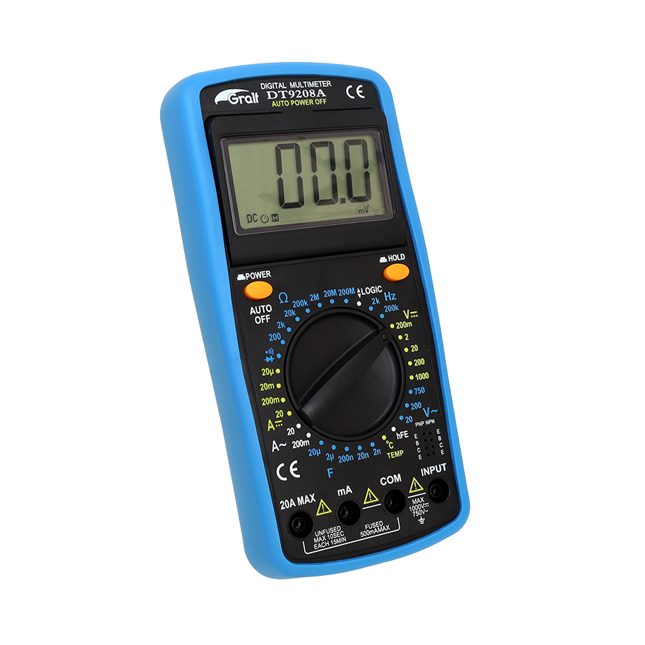 Funciones adicionales: Logic / Prueba de diodos / Continuidad / hFE / Indicador de batería baja / Pantalla con movimiento angular / TRUE-RMS
