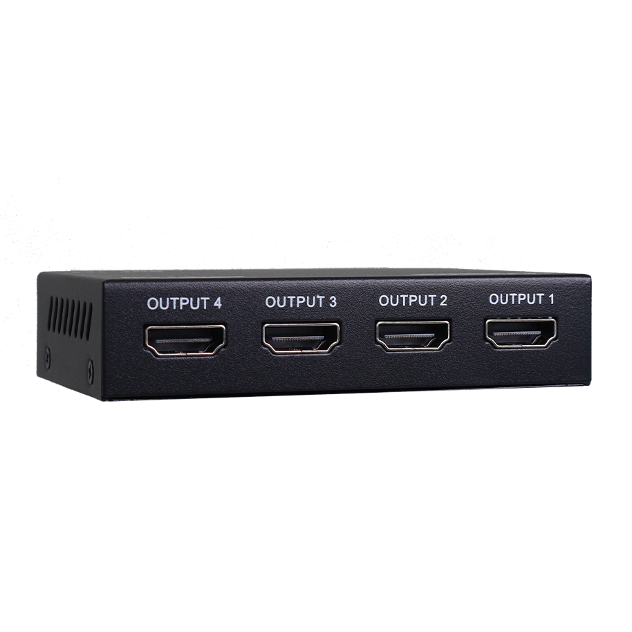 Splitter HDMI de una entrada a cuatro salidas, ideal para la distribución de video en destinos como hogares, comercio, CCTV.